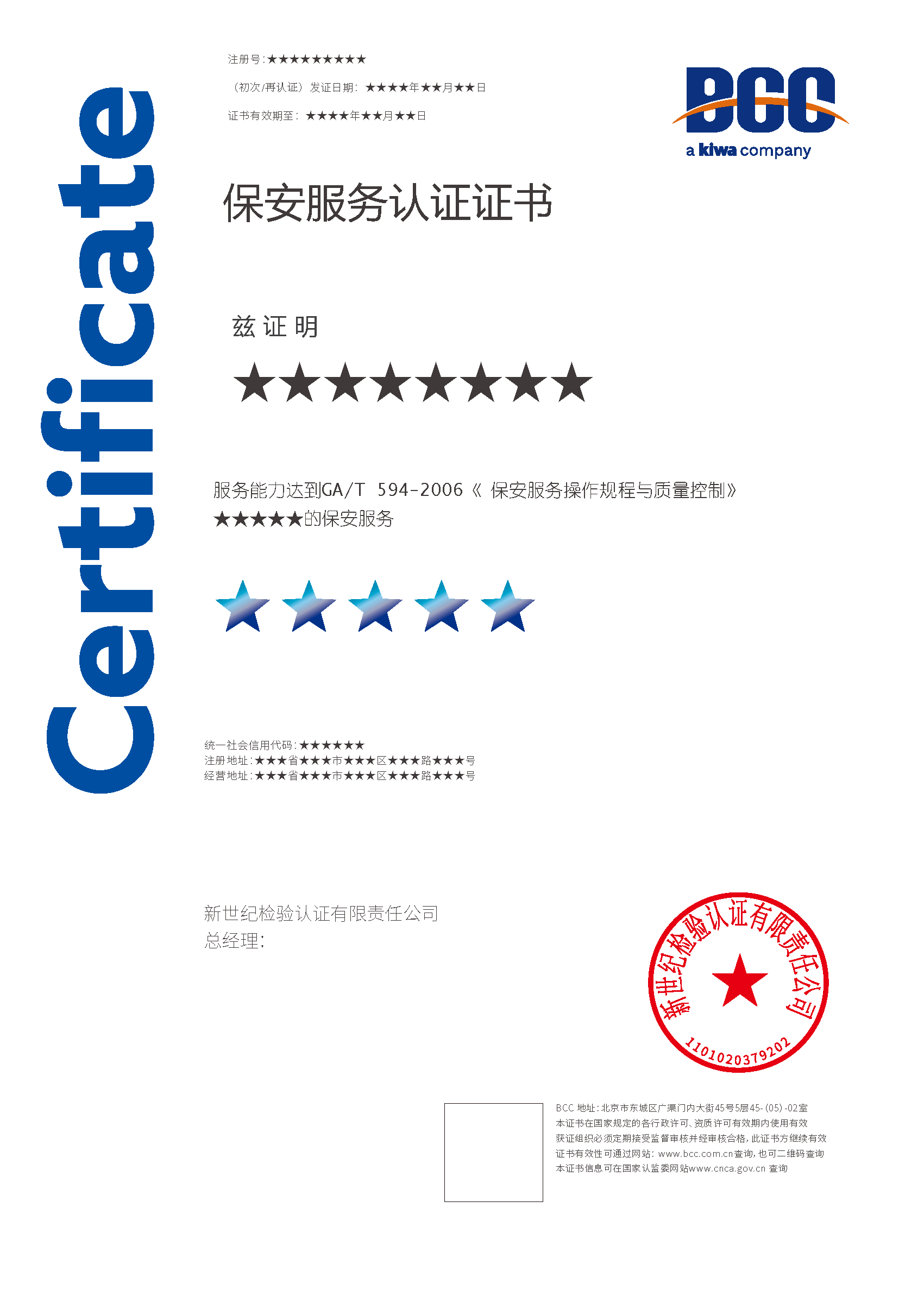 保安服務(wù)認(rèn)證證書的有效期為三年,BCC每年會(huì)對獲證組織進(jìn)行必要的監(jiān)督審查,證書到期前會(huì)進(jìn)行再認(rèn)證審查。