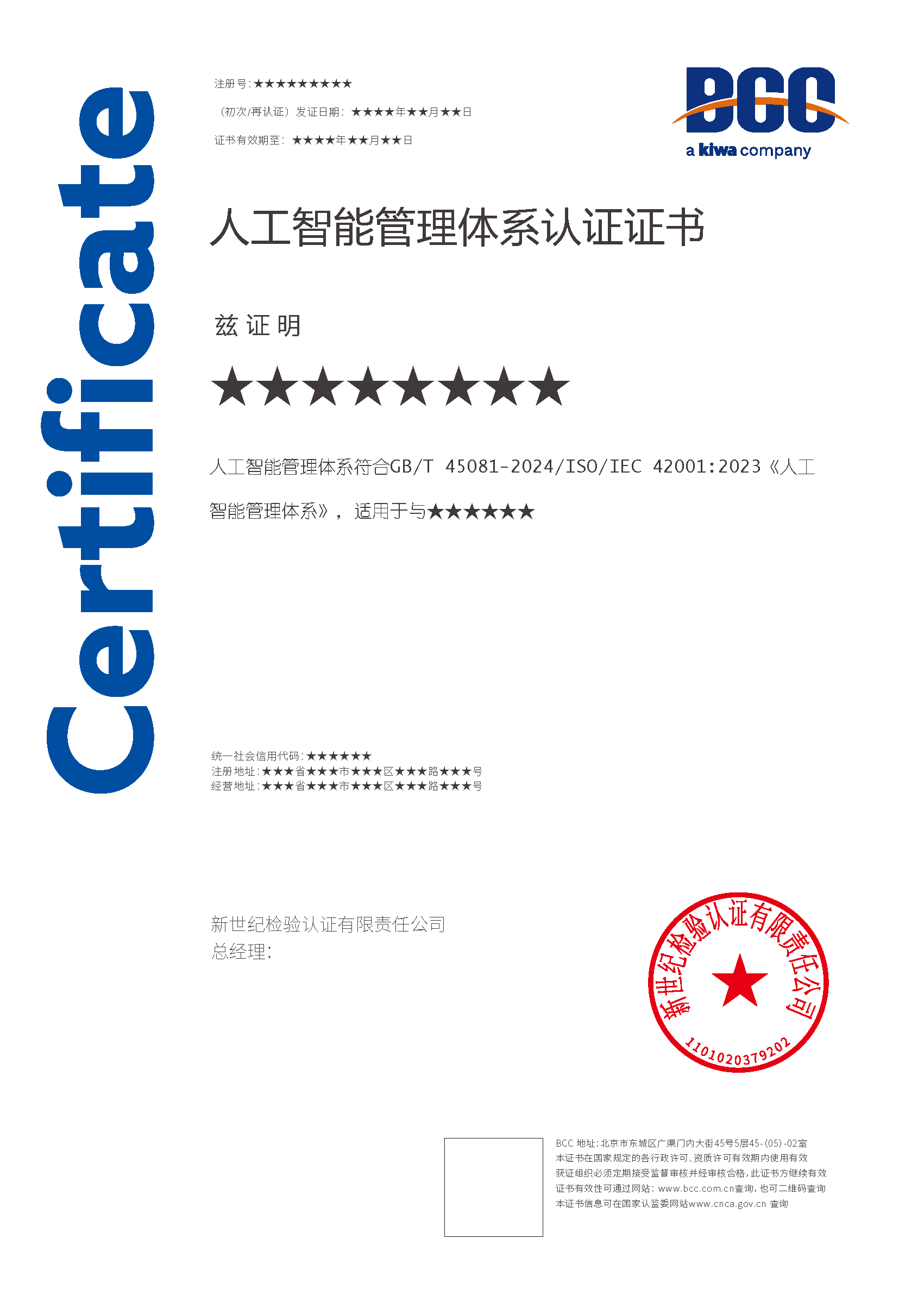 本頁(yè)涉及的認(rèn)證服務(wù)中均有對(duì)應(yīng)的《認(rèn)證實(shí)施規(guī)則》,BCC擁有其最終解釋權(quán)。任何組織及個(gè)人未經(jīng)BCC許可,不得以任何形式全部或部分使用(法律要求除外)認(rèn)證相關(guān)信息。如需獲取相關(guān)實(shí)施規(guī)則請(qǐng)用以下方式聯(lián)系獲取:電話:010-58579316 郵箱:fwjs@kiwa.cn