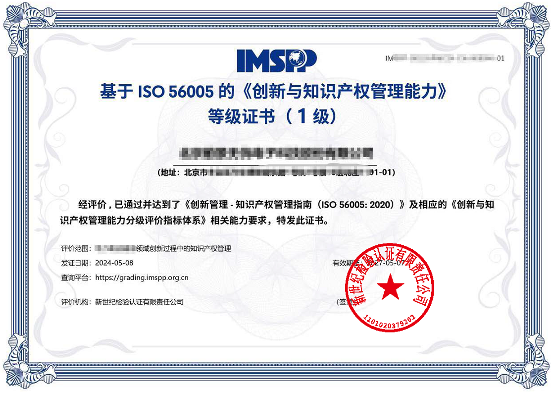 ISO 56005證書樣例