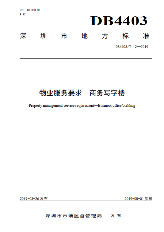 深圳市市場監(jiān)管局自2016年開始籌備物業(yè)服務認證工作,歷經(jīng)三年多,在深圳標準認證聯(lián)盟和標準技術研究院的大力支持下,中航物業(yè)和SGS通標標準技術服務有限公司經(jīng)過行業(yè)走訪調(diào)研、專業(yè)論證、條款編寫、標準評審,終于在2019年5月1日聯(lián)合發(fā)布了首個服務類深圳認證標準DB 4403/T 12—2019《物業(yè)服務要求 商務寫字樓》,標準引入了先進的服務接觸理論和服務質(zhì)量評價模型,從客戶感知和企業(yè)自身管理兩個角度提出服務要求和管理要求,結(jié)合深圳市商務寫字樓的先進技術和先進方法,具有較強的科學性和適用性,達到了國內(nèi)領先、國際一流水平。認證按照深圳標準認證聯(lián)盟發(fā)布的首個服務認證實施規(guī)則實施。