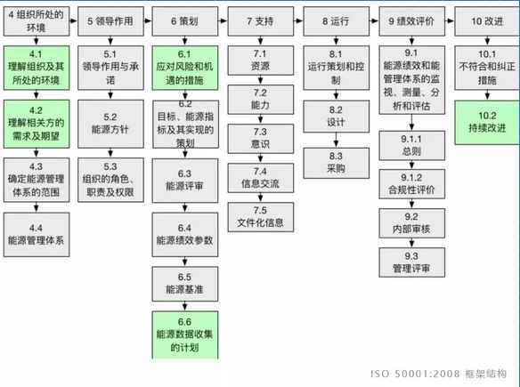 能源管理體系就是運用管理手段、系統(tǒng)思想、過程方法、PDCA途徑和持續(xù)改進(jìn),對所控制的對象進(jìn)行系統(tǒng)的控制管理,它為企業(yè)能源管理提供了基本準(zhǔn)則,使企業(yè)建立測量、管理、改進(jìn)能源管理的體系,并使之規(guī)范化、文件化。它強(qiáng)調(diào)能源管理的透明度,覆蓋組織與能源管理有關(guān)的內(nèi)部過程和外包過程,是組織明確企業(yè)能源管理的過程和應(yīng)關(guān)注的重點,對強(qiáng)化結(jié)構(gòu)節(jié)能與技術(shù)節(jié)能,促進(jìn)企業(yè)構(gòu)建長效節(jié)能機(jī)制具有重要意義。