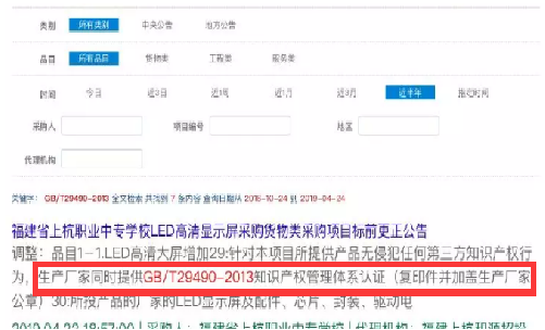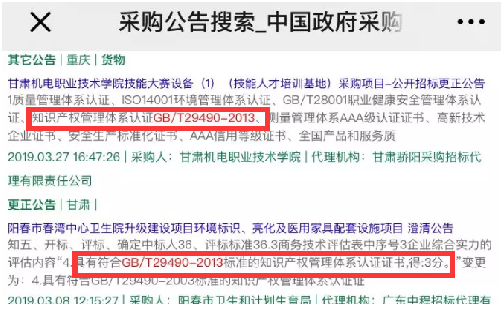 蘇州市滄浪中學校招標要求之一:產(chǎn)品生產(chǎn)廠家獲得GB/T29490-2013知識產(chǎn)權管理體系認證,3分。
