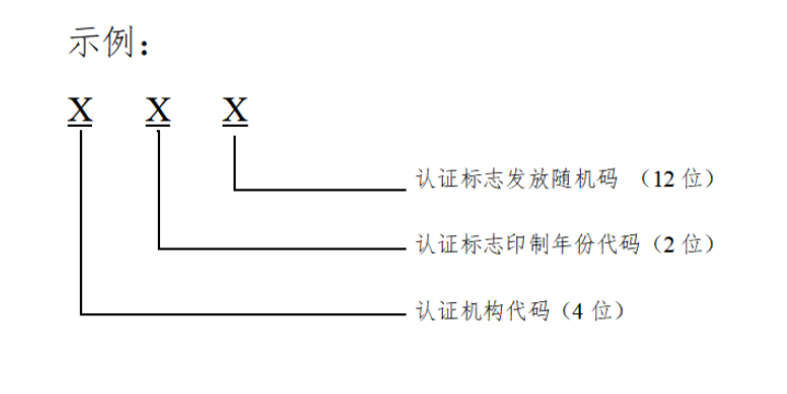 該代碼是認(rèn)證機(jī)構(gòu)發(fā)放認(rèn)證標(biāo)志數(shù)量的12位阿拉伯?dāng)?shù)字隨機(jī)號(hào)碼。數(shù)字產(chǎn)生的隨機(jī)規(guī)則由各認(rèn)證機(jī)構(gòu)自行制定。