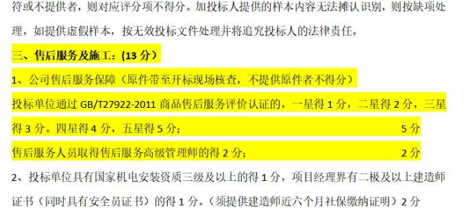 商品售后服務(wù)認(rèn)證的招投標(biāo)優(yōu)惠加分有多少?